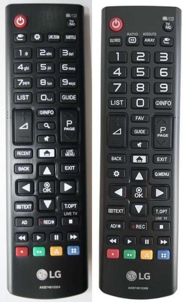 Značkový originální dálkový ovladač LG AKB74915308 (15324). Dálkový ovladač byl vyvinut speciálně na míru pro tyto modely značky LG:22MT41DFPZAEU, 24MT41DFPZ, 24MT48DFPZ, 28MT48DF, 32LH510B, 32LH510UAEU, 32LH570U, 32LH570UAEU, 32LJ510B, 32LJ510UAEE, 32LV340C, 32LW340C, 43LH5100, 43LH510V, 43LH510VAEU, 43LH541V, 43LH570VAEU, 43LJ5150AEE, 43LJ515VAEE, 43LV340C, 43LW340C, 43UH664V, 49LH5100, 49LH510VAEU, 49LH541V, 49LH570V, 49LJ5150AEE, 49LJ515VAEE, 49LV340C, 49LW340CAEK, 49LW340CAEU, 49UH664V, 55LV340C, 55LW340CAEU, 55UH664VAEU, 65UH664V. (Nemusí zde být uvedeny úplně všechny kompatibilní modely. Pokud si nejste jisti, sdělte nám svůj model (použijte online chat, e-mail, telefon), neprodleně zkontrolujeme a ověříme, zda je tento ovladač kompatibilní s Vaším přístrojem. Za poskytnutou informaci ručíme.) Byl nahrazen kompatibilním originálním dálkovým ovladačem AKB74915324 (zobrazen vlevo).Jedná se o ORIGINÁLNÍ dálkové ovladání, proto nevyžaduje žádné párování, nastavování ani žádné kódy. Stačí vložit baterie a funguje se všemi výše uvedenými modely.