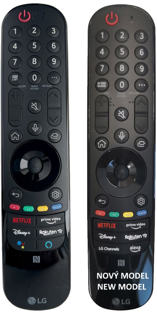 Značkový originální magický dálkový ovladač LG AN-MR21GC (ANMR21GC). Je určen pro tyto modely LG:2021, 2021 OLED TV'S G1, C1, A1 SERIES , 2021 QNED MINI-LED TV'S QNED99, 43NANO753PA, 43NANO75P, 43NANO77P, 43UP78003LB, 50NANO773PA, 50NANO803PA, 55NANO753PR, 55NANO75P, 55NANO773PA, 55NANO77P, 55UP75003LF, 55UP78003LB, 65NANO863PA, 75NANO753PA, 75NANO883PB, 86NANO863PA, A1, B1, C1, G1, NANO75, NANO80, NANO85, NANO86, NANO88, NANO9+, NANO90, NANO99, OLED48C11LB, OLED48C17LB, OLED55C12LA, OLED55CB11LB, OLED55G1, OLED65C11LB, OLED65C19LA, OLED77C11LB, QNED - 993, 963, 913, QNED90 SERIES 2021, UP75, UP76, UP77, UP80, Z1. (Nemusí zde být uvedeny úplně všechny kompatibilní modely. Pokud si nejste jisti, sdělte nám svůj model (použijte online chat, e-mail, telefon), neprodleně zkontrolujeme a ověříme, zda je tento ovladač kompatibilní s Vaším přístrojem. Za poskytnutou informaci ručíme.) ?Dálkový ovladač je originální dálkový ovladač od výrobce LG✔ Jedná se o nové ORIGINÁLNÍ RF (rádiové) dálkové ovládání, proto je třeba je spárovat s vaším zařízením (všechny rádiové dálkové ovladače musí být párovány). Metoda párování je popsána v návodu k přístroji nebo Vám návod na požádání pošleme emailem. HLASOVÉ OVLÁDÁNÍ: ANO Pokud se nechcete zdržovat nějakým párováním, chcete jen vložit baterie a hned ovládat, pak doporučujeme objednat GENERAL MAGIC TV, který funguje na všechny SMART TV modely této značky a díky inovativní technologii nevyžaduje žádné párování. Dodává se originální dálkový ovladač AN-MR21GA, AKB76036201, který je zcela kompatibilní, má naprosto stejný vzhled i funkce. Je to identický ovladač s jiným označením.
