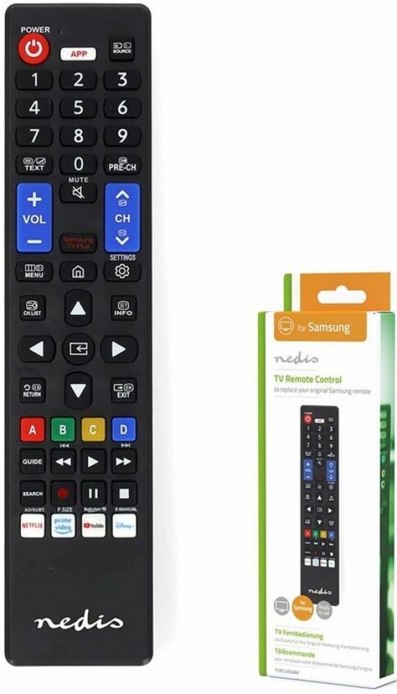 Náhrada ztraceného nebo poškozeného TV dálkového ovladače Samsung.Předprogamovaný, připravený k použití. Zaručeně funguje se 100 % všech modelů televizorů Samsung. Velká databáze kódů nahradí všechny funkce původního ovladače. Výuková funkce pro plné přizpůsobení dálkového ovladače vašim potřebám. Obsahuje klávesové zkratky pro Netflix, Amazon Prime, Disney, YouTube. Padne Vám pohodlně do ruky. Ov...