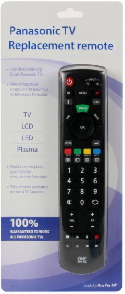 Univerzální dálkový ovladač pro TV Panasonic. Výrobce garantuje 100% kompatibilitu se všemi Panasonic televizemi. Univerzální dálkový ovladač pro TV Panasonic. Výrobce garantuje 100% kompatibilitu se všemi Panasonic televizemi. Pro zprovoznění není vyžadováno žádné složité nastavení. Ovladač zároveň podporuje všechna specifická tlačítka jako Link, Tools, Guide včetně kruhového tlačítka pro snadnou navigaci. Jeho dosah je přibližně 15 metrů, napájí ho dvě AA baterie, jež nejsou součástí balení. Rozměry ovladače jsou 22,3 × 5 × 2,3 cm, hmotnost 90 g.