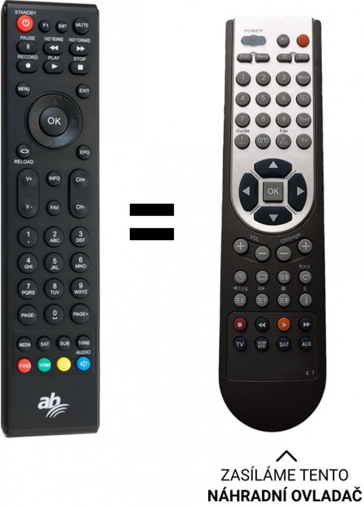 AB náhradní dálkový ovladač bez nutnosti nastavování. Cryptobox 500HD, 550HD, 625HD, 600HD, 650HD, 700HD, 750HD, 752HD, CR752HD, lépe a intuitivně rozmístěná tlačítka.