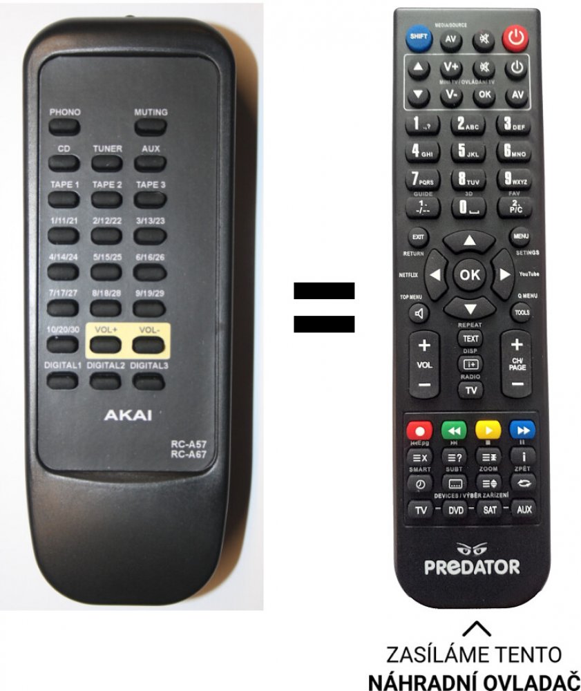 Dálkový ovladač Predátor Akai RC-A57, RC-A67