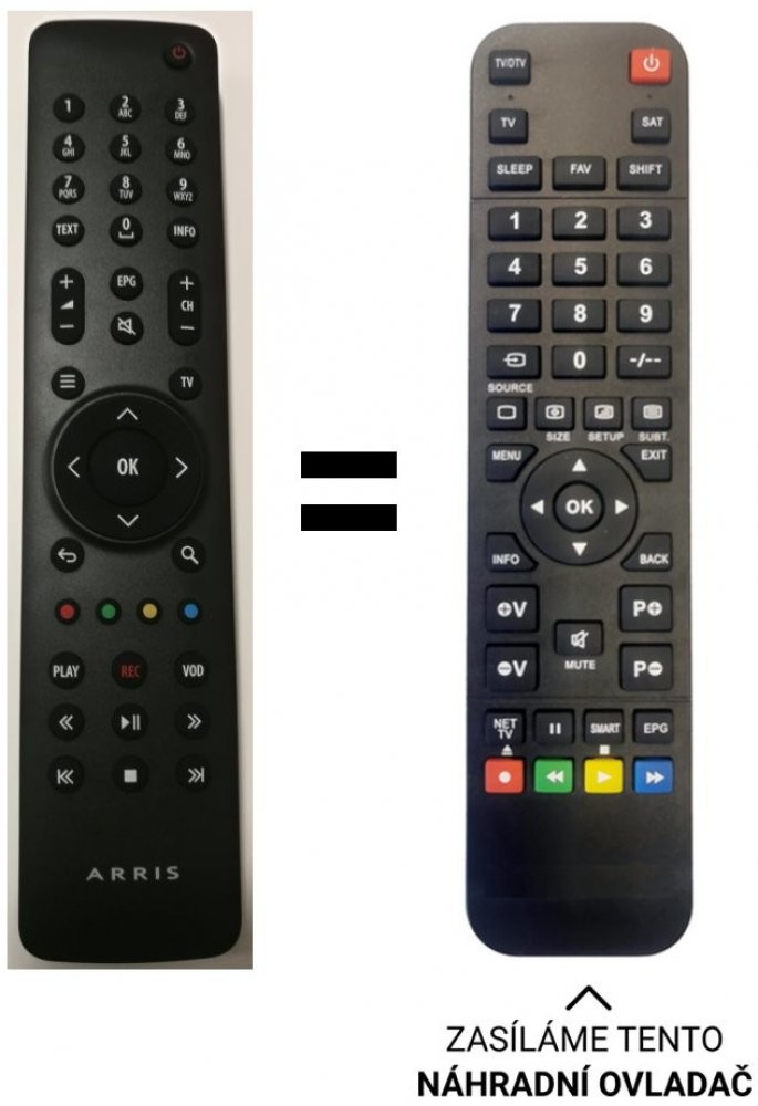 Arris náhradní dálkový ovladač bez zadávání kódů. Arris VIP4205. ovladač 593255-001-00. PROHLÉDNĚTE SI OBRÁZKY PRO IDENTIFIKACI OVLADAČE (TLAČÍTKO PRO ZAPNUTÍ) 593255-004-00 rris náhradní dálkový ovladač bez zadávání kódů. Arris VIP4205. ovladač 593255-001-00. PROHLÉDNĚTE SI OBRÁZKY PRO IDENTIFIKACI OVLADAČE (TLAČÍTKO PRO ZAPNUTÍ)