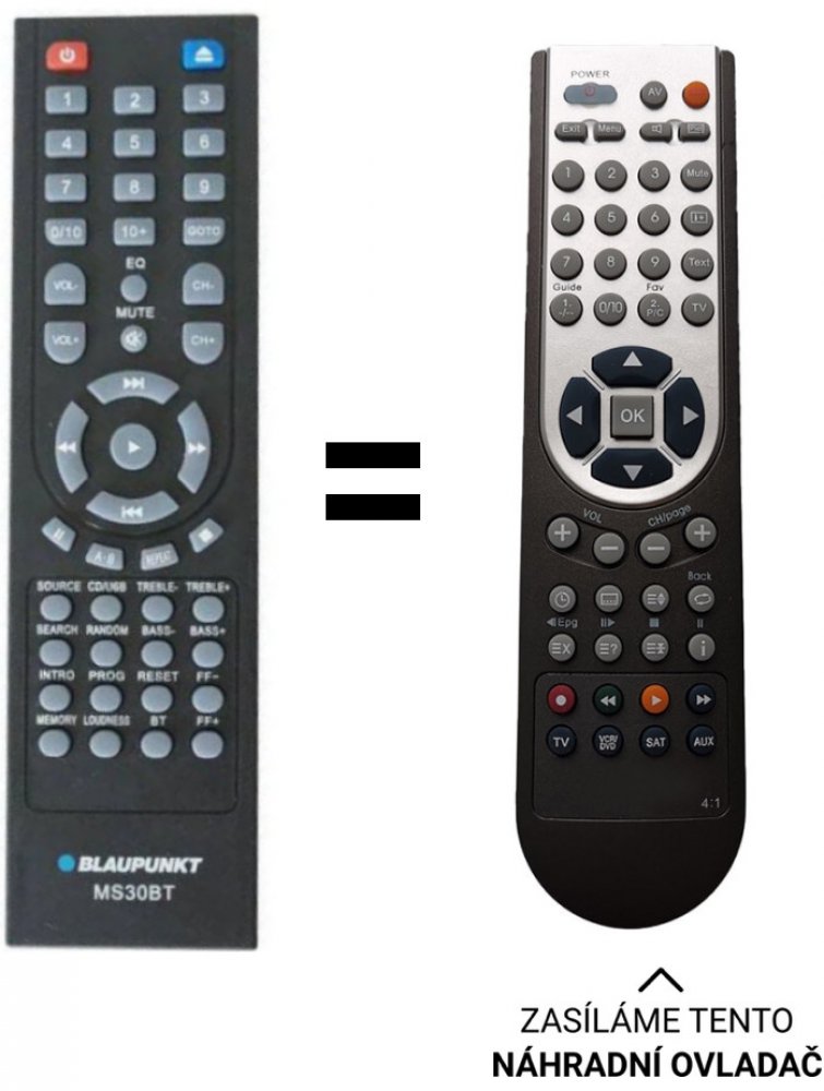 Náhradní dálkový ovladač pro Blaupunkt MS30BT. Nepotřebuje kódy. MS30 MS35 MS30BT MS35BT