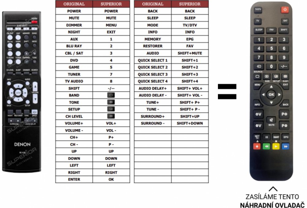 Denon náhradní dálkový ovladač . NEPOTŘEBUJE KÓDY