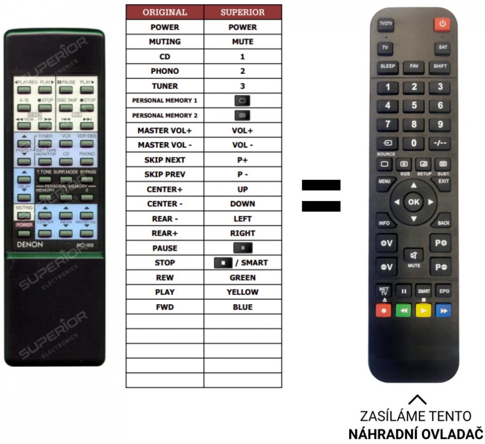 Denon náhradní dálkový ovladač . NEPOTŘEBUJE KÓDY