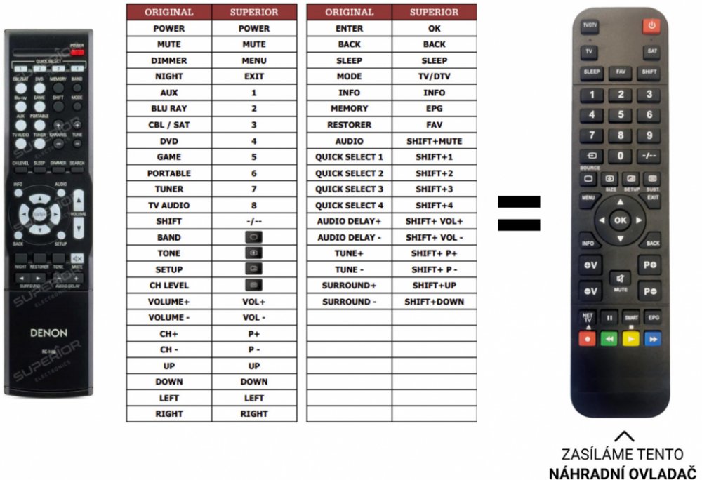 Denon náhradní dálkový ovladač . NEPOTŘEBUJE KÓDY