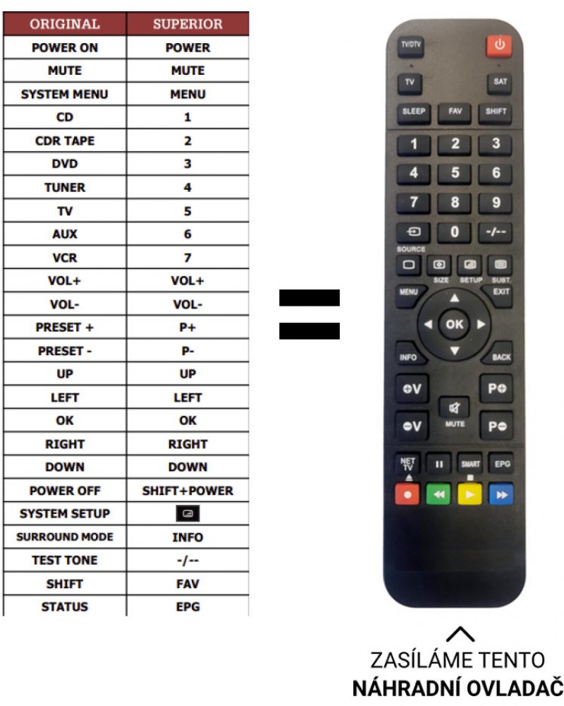 Denon náhradní dálkový ovladač . NEPOTŘEBUJE KÓDY