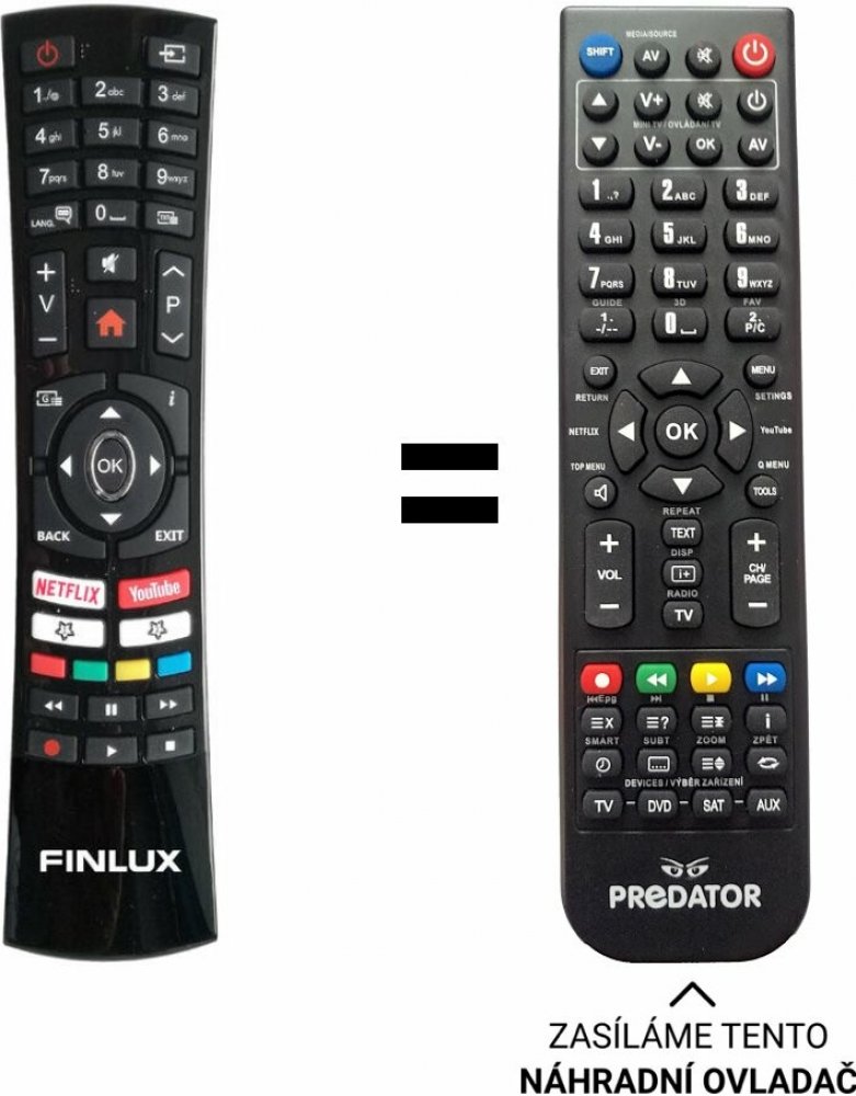 FINLUX náhradní dálkový ovladač BEZ NUTNOSTI NASTAVOVAT KÓDY. TVF24FDM5760, TVF 24FDM5760, TVF24FHE5760, TVF 24FHE5760,TVF32FHE5660, TVF 32FHE5660, TVF50FUF8260, TVF 50FUF8260, TVF43FFF5660, TVF43FUF7161, TVF43FUF8261,TVF50FUF7161, TVF50FUF8261, TVF50FUF9060, TVF55FUF8261, TVF55FUF9060, TVF65FUF9060