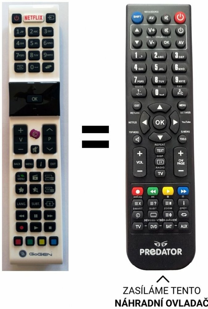 GOGEN náhradní dálkový ovladač jiného vzhledu.BEZ ZADÁVÁNÍ KÓDŮ. RCA49130, 30092061, RC49130, RC-A49130 například pro TVF43N384STWEB, , TVF32N425STWEB,