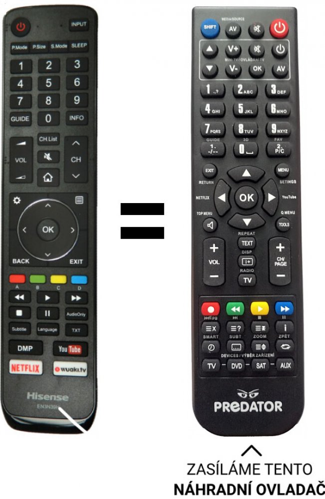 Náhradní dálkový ovladač Hisense EN3N39H, NEPOTŘEBUJE KÓDY například pro H43N5705