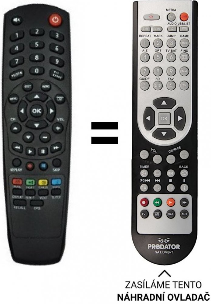 BEZ ZADÁVÁNÍ KÓDŮ Náhradní dálkový ovladač jiného vzhledu, ale stejných funkcí jako originální ovladač pro