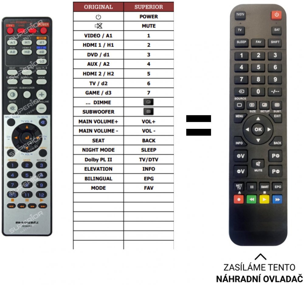 Marantz náhradní dálkový ovladač jiného vzhledu BEZ NUTNOSTI ZADÁVAT KÓDY
