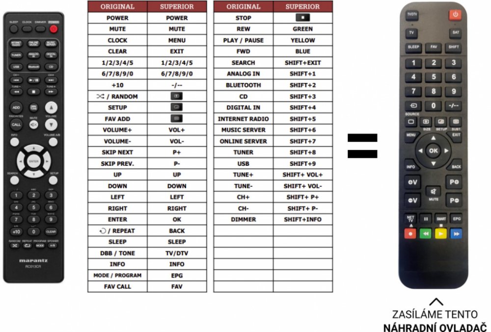 Marantz náhradní dálkový ovladač jiného vzhledu BEZ NUTNOSTI ZADÁVAT KÓDY