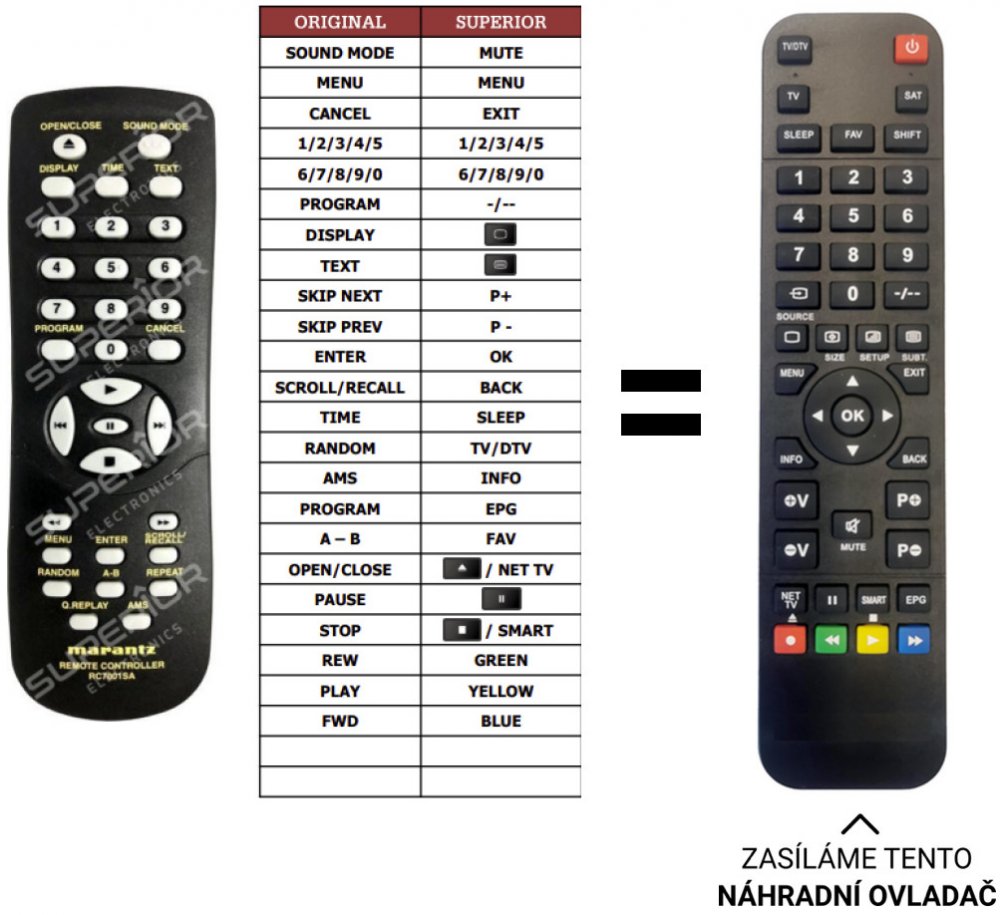 Marantz náhradní dálkový ovladač jiného vzhledu BEZ NUTNOSTI ZADÁVAT KÓDY