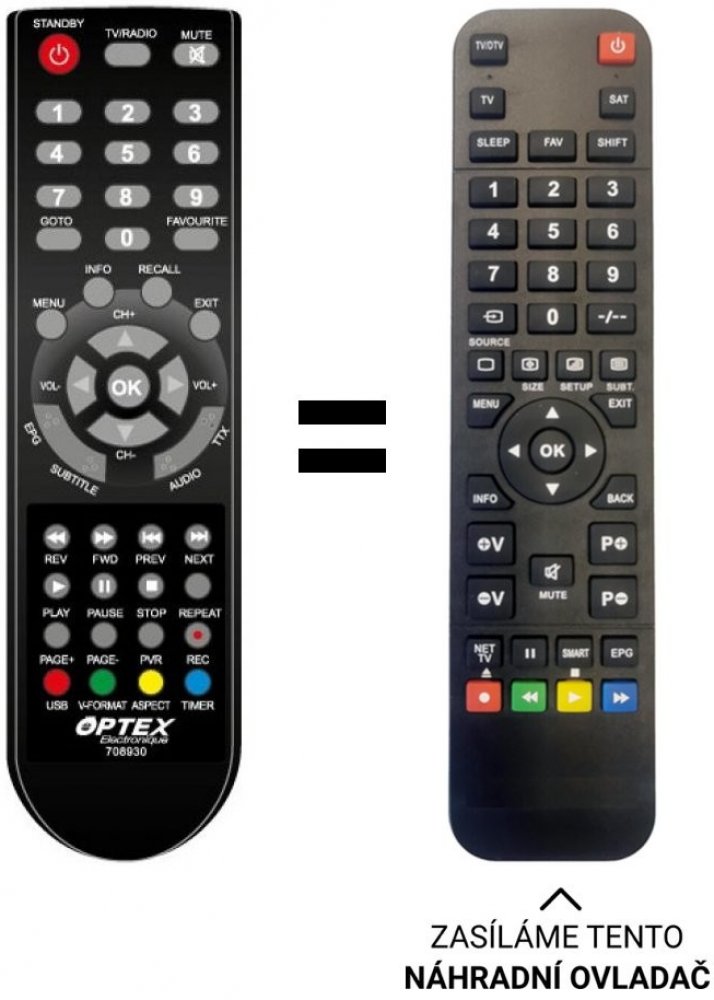 OPTEX náhradní dálkový ovladač BEZ NUTNOSTI ZADÁVÁNÍ KÓDŮ. Pro ORT3930HD, Optex 708930, ORT8898, ORT 8898