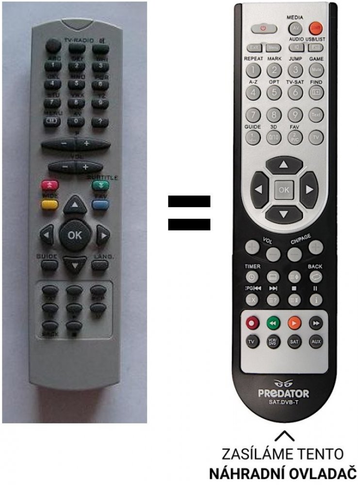 Má všechny funkce jako originál. Rozpis tlačítek je přiložen. Náhradní dálkový ovladač: Pokud chcete aby ovladač ovládal i vaše TV, napište nám model a značku do poznámky.