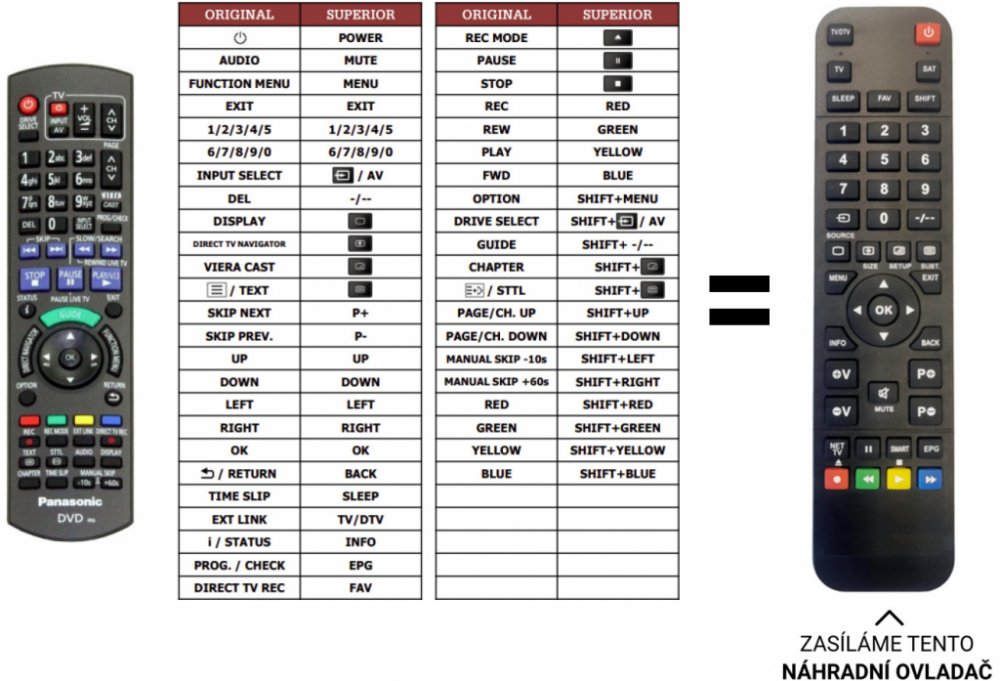 Panasonic náhradní dálkový ovladač . NEPOTŘEBUJE KÓDY