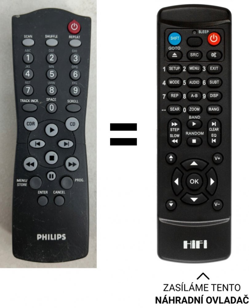 Náhradní dálkový ovladač pro audio philips například pro AS440, AS445, AS450, AS540, AS545, CD-R765, CDR570, CDR600, CDR700, CDR765, CDR770, CDR775, CDR777, CDR778, CDR820, CDR930, CDR950, Philips 70CD950/37S