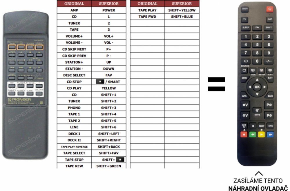 Pioneer náhradní dálkový ovladač - NEPOTŘEBUJE KÓDY.