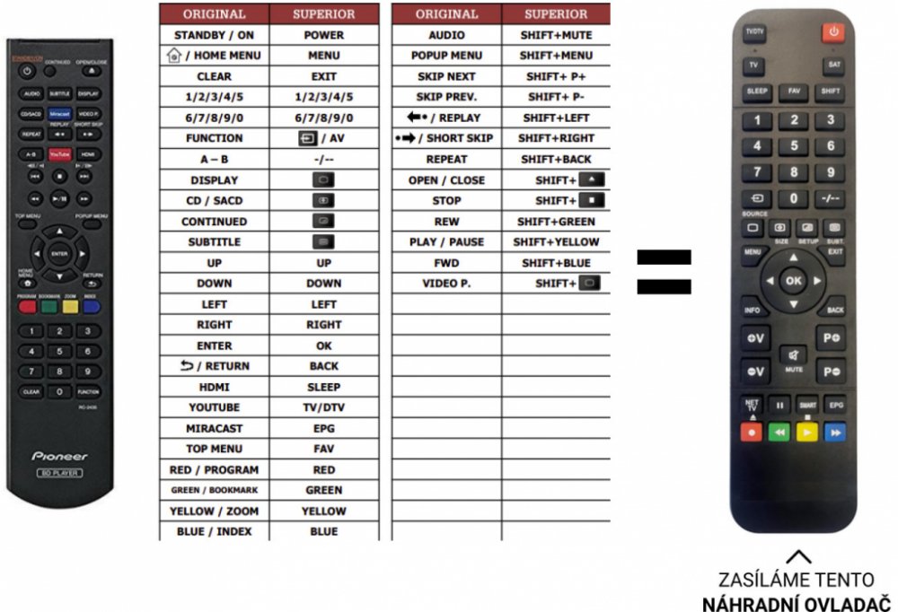 Pioneer náhradní dálkový ovladač - NEPOTŘEBUJE KÓDY.