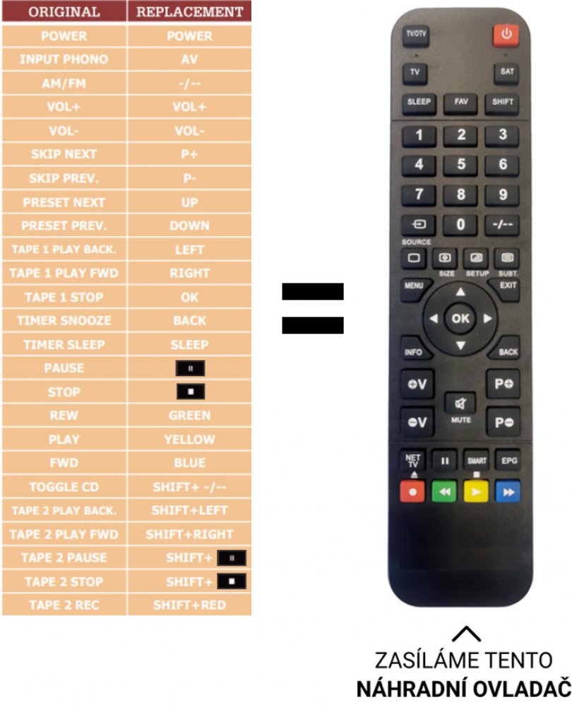 Pioneer náhradní dálkový ovladač - NEPOTŘEBUJE KÓDY.