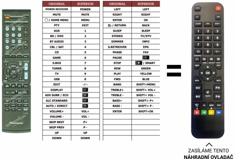 Pioneer náhradní dálkový ovladač RC929r, VSX531 VSX532. NEPOTŘEBUJE KÓDY