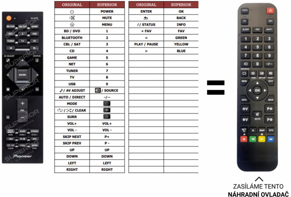 Pioneer náhradní dálkový ovladač - NEPOTŘEBUJE KÓDY.