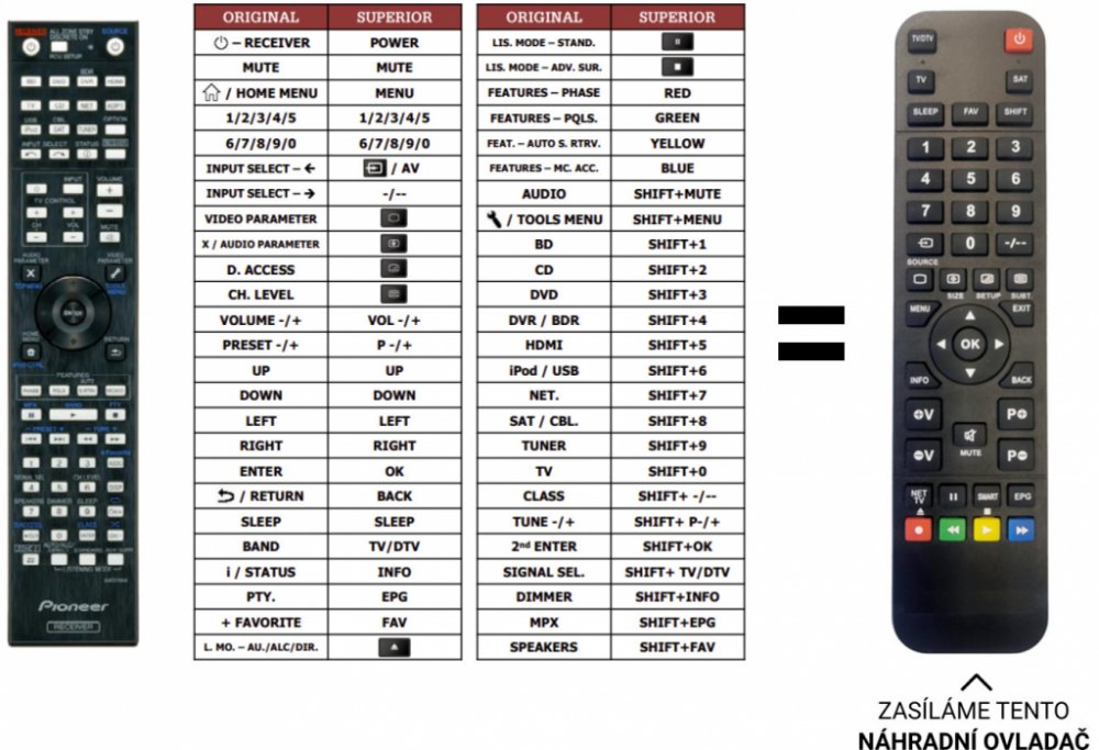 Pioneer náhradní dálkový ovladač - NEPOTŘEBUJE KÓDY.