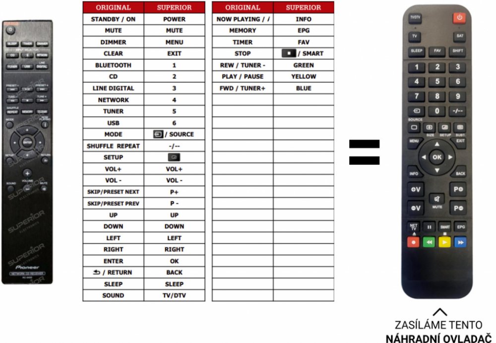 Pioneer náhradní dálkový ovladač - NEPOTŘEBUJE KÓDY.