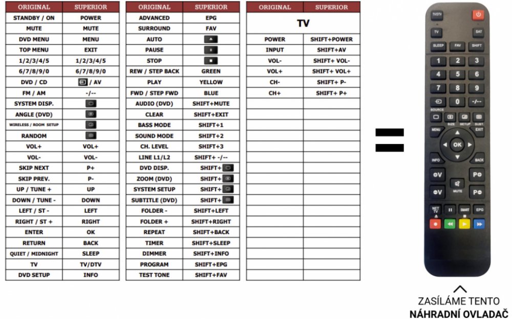 Pioneer náhradní dálkový ovladač - NEPOTŘEBUJE KÓDY.