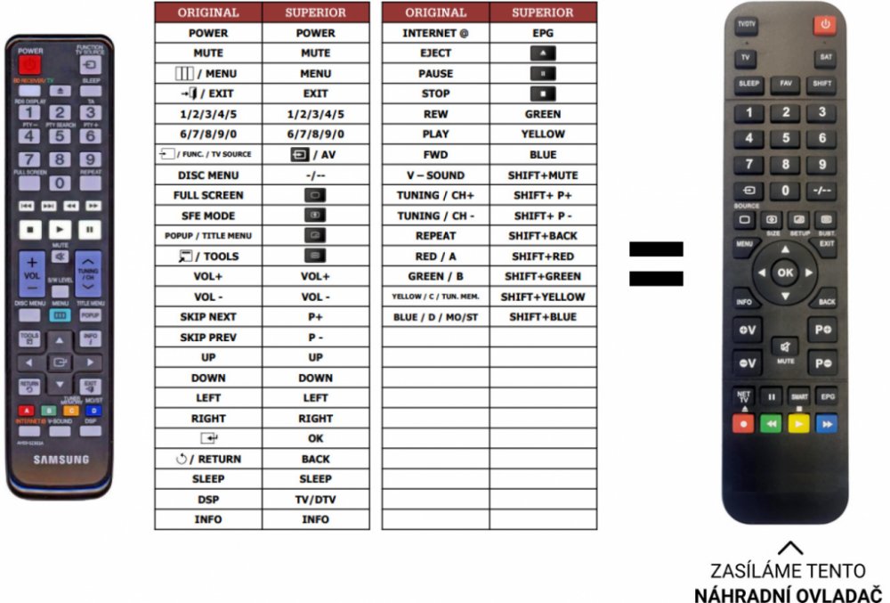 BEZ ZADÁVÁNÍ KÓDŮ. Náhradní dálkový ovladač AH5902303A pro domácí kino Samsung HT-C6200, HT-C5200, HT-C9959W , HT-C9950W , HT-C9930 , HT-C7559W , HT-C7550W , HT-C7300 , HT-C7300/EDC , HT-C7300/XEN , HT-C7200 , HT-C7200/XEN , HT-C6930 , HT-C6800 , HT-C6800/EDC , HT-C6800/XEF , HT-C6730 , HT-C6500 , HT-C6200 , C6200/EDC , HT-C6200/XEF , HT-C5900 , HT-C720 , HTC720 , HTC5800 , HT-C5800 , HT-C5800/EDC...
