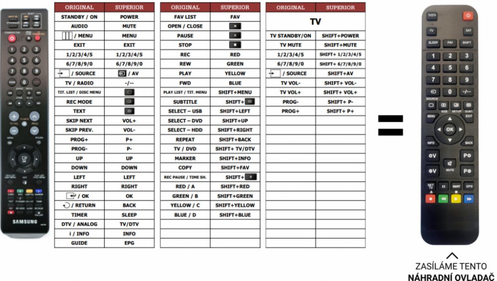 ORIGINÁL SE JIŽ NEDODÁVÁ. Návod je přiložen. Ovladač je připraven k použití, nemusí se nastavovat. DVD-SH873 DVD-SH874 DVD-SH875 DVD-SH876 DVD-SH877