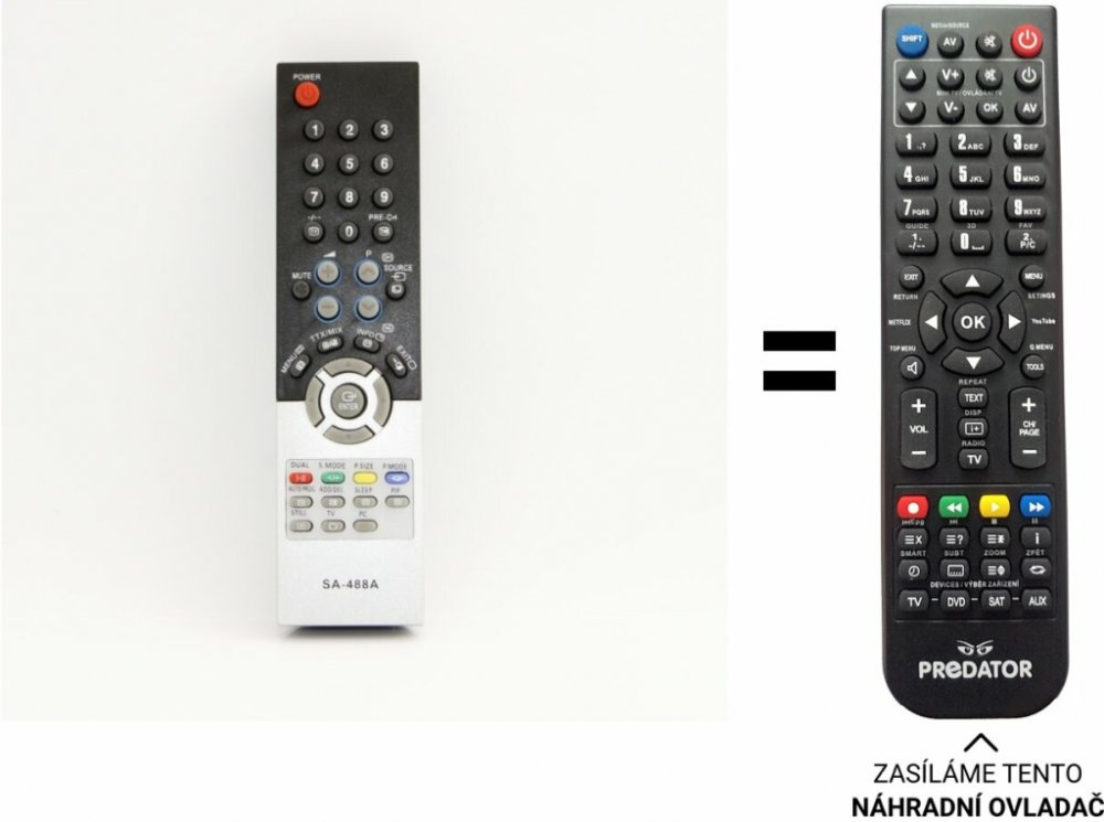 Náhradní dálkový ovladač jiného vzhledu BEZ NUTNOSTI ZADÁVAT KÓDY BN5900488A pro LCD televizory SAMSUNG: LE-27T51S LE-32T51BX, LE26R32B, LE32T51BX, LE27T51S, PS42V6S,PS-42V6S LE27T51BX, LE23R71B LE23R71W LE23T51B LE27T51B LE32T51B • PS42V6S, LE26R51BX/XEH Náhradní dálkový ovladač má stejný vzhled i funkce jako originál. Pouze na něm není napsáno Samsung.