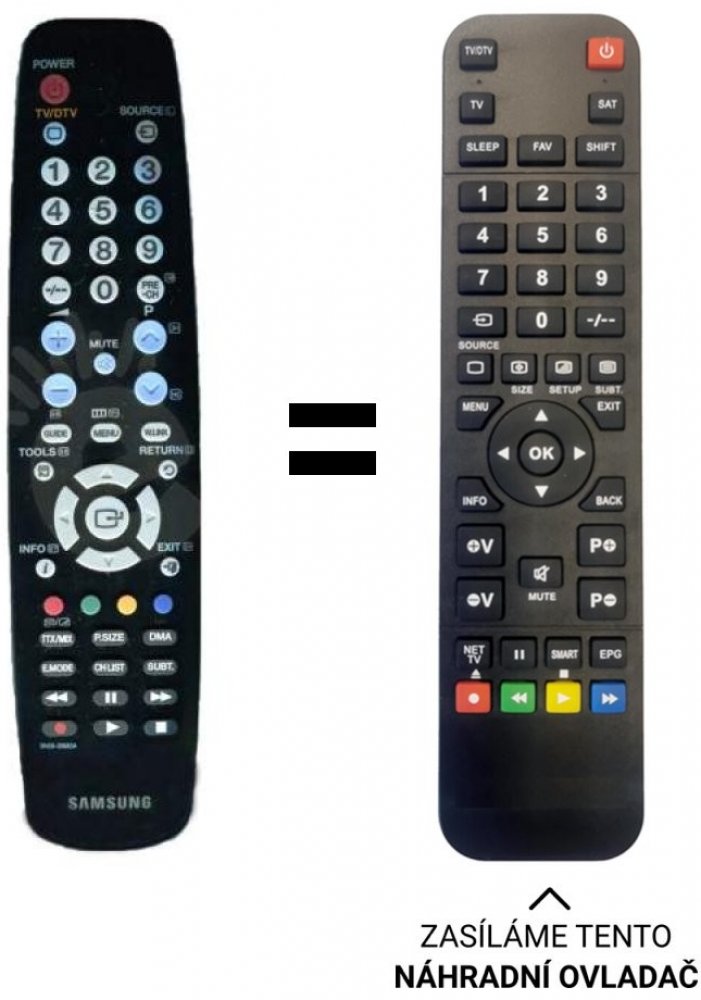 BEZ ZADÁVÁNÍ KÓDŮ Náhradní dálkový ovladač BN59-00683A, TM96B pro LCD televizory SAMSUNG: LE-32A559P LE-37A559P LE-40A559P LE-46A559P, LE-37A557P2F, LE37A557P2F, LE40A556P1F, LE40A656A1FXXH, LE32A336J1DXXH, LE 32A336J1DXXH, LE40A556P1E,LE-32A559P LE-37A559P LE-40A559P LE-46A559P Originální dálkový ovladač BN5900683, TM96B pro televizory SAMSUNG typu LE32A556P1C LE32A556P1F LE32A557P2C LE32A557P2F ...