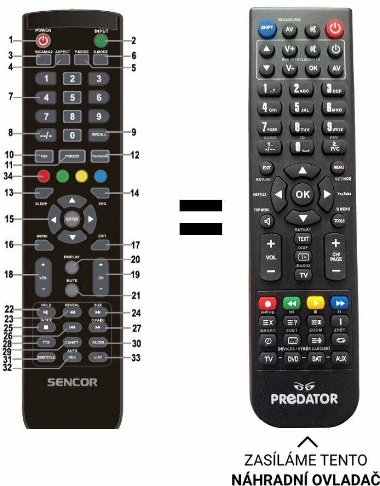 Dálkový ovladač Predátor Sencor SLE 1963T