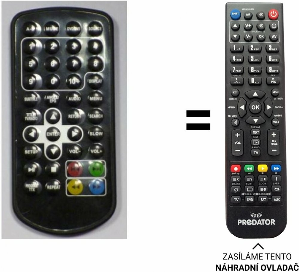 Náhradní dálkový ovladač pro přenosné DVD Sencor. NEPOTŘEBUJE KÓDY