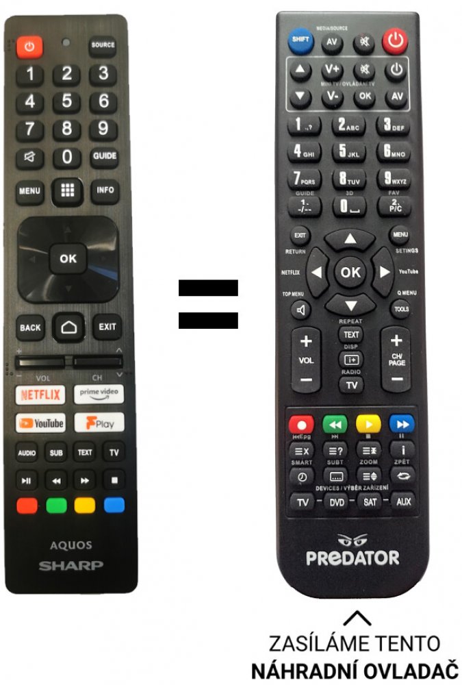 Dálkový ovladač Predátor Sharp 32FH8EA, 40FH2EL, 43FH2AE, 55FL1EA, 55FL1KA, 55FN1EA, 65FN7EA