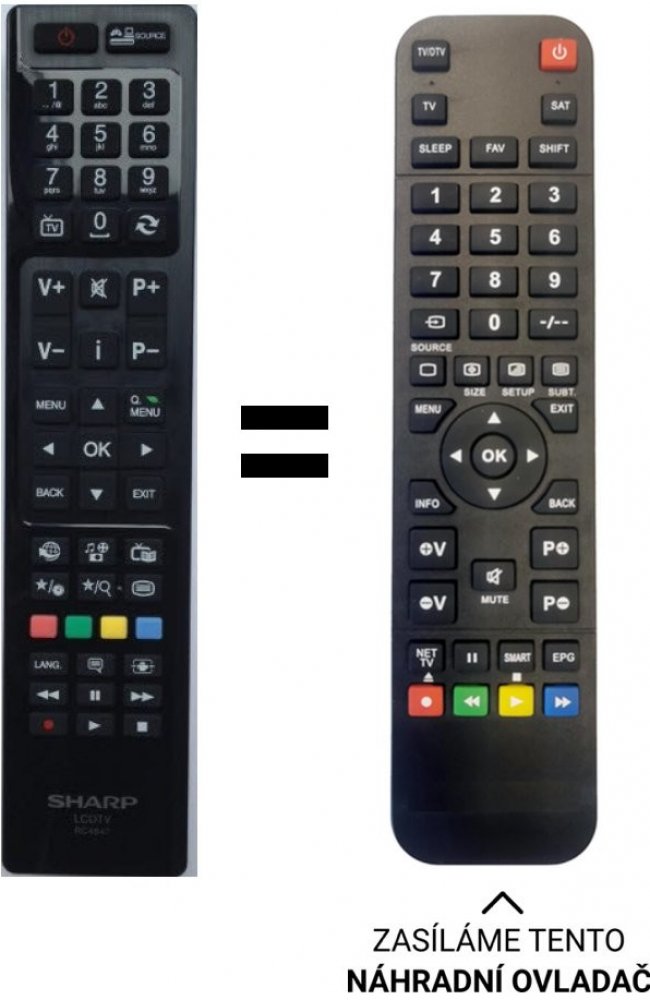 LC-32LE350V-BK Náhrazuje dálkové ovladače RC4847 Naříklad pro modely lcdtv SHARP LC-32LE350E-BK LC-39LE350E-BK -HW, LC-39LE350E LC-32LE350E - LC-32LE350E-HW - LC-39LE350E-HW LC-32LE352E LC-39LE352E-BK, LC-32LE351E LC-39LE351E, LC-32LE352E-BK.