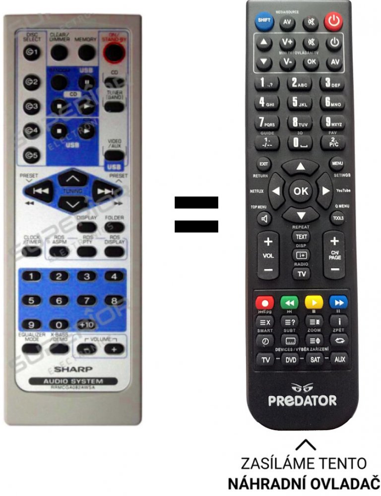 Náhradní dálkový ovladač jiného vzhledu, například pro audio Sharp XL-570H, XL-UH222H, XL-UH240, XL-UR2180H, XL-UR2380H, XL-UR2580H, XLUH242.