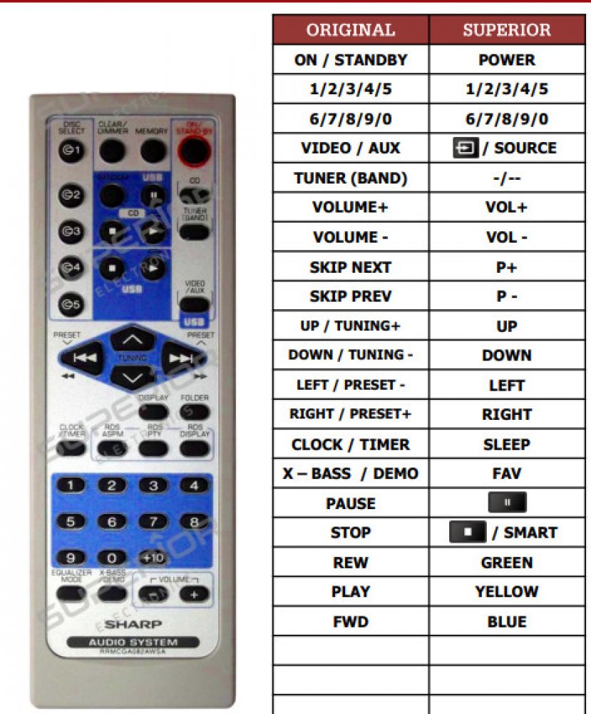 Náhradní dálkový ovladač jiného vzhledu, například pro audio Sharp XL-U220H, XLUH220H, XLUH240HBK, XL-U220HE, XLUH2440H, XLUH222H, XL-U220H