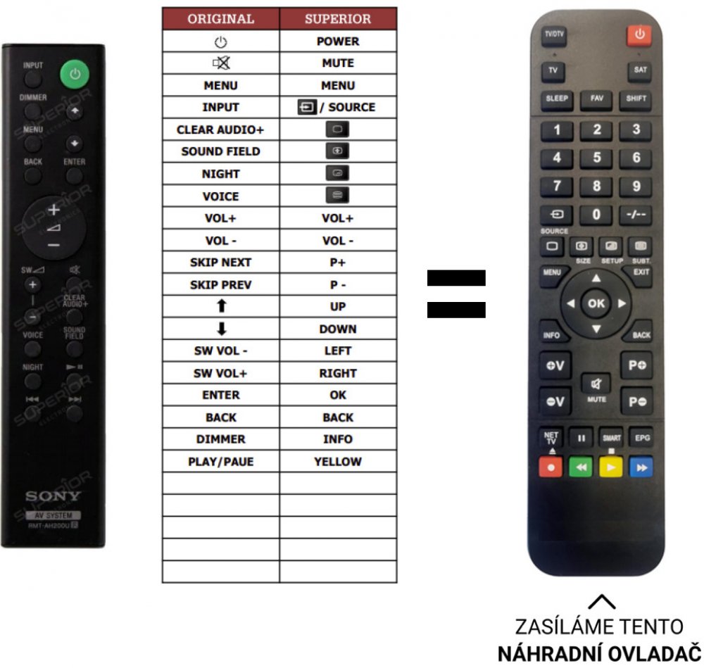 Sony náhradní dálkový ovladač . NEPOTŘEBUJE KÓDY