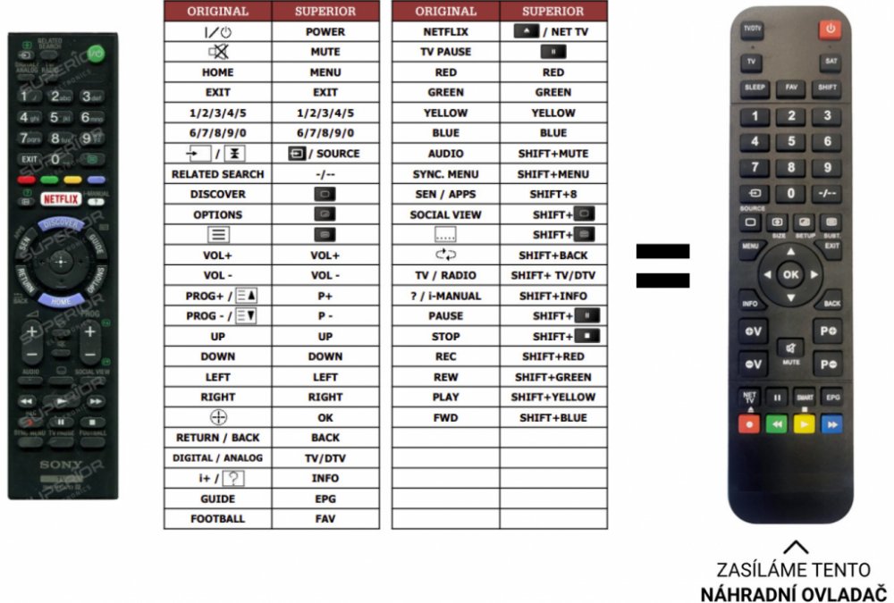 Sony náhradní dálkový ovladač . NEPOTŘEBUJE KÓDY