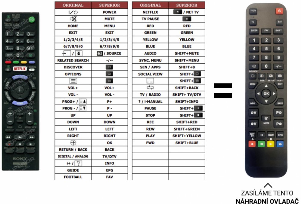 Sony náhradní dálkový ovladač . NEPOTŘEBUJE KÓDY