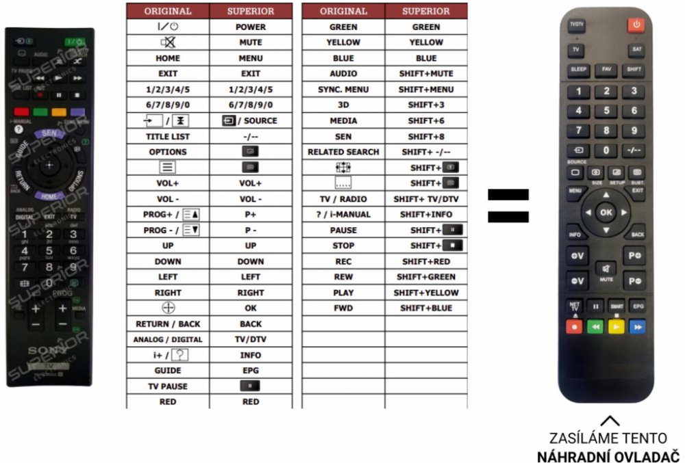 Sony náhradní dálkový ovladač . NEPOTŘEBUJE KÓDY