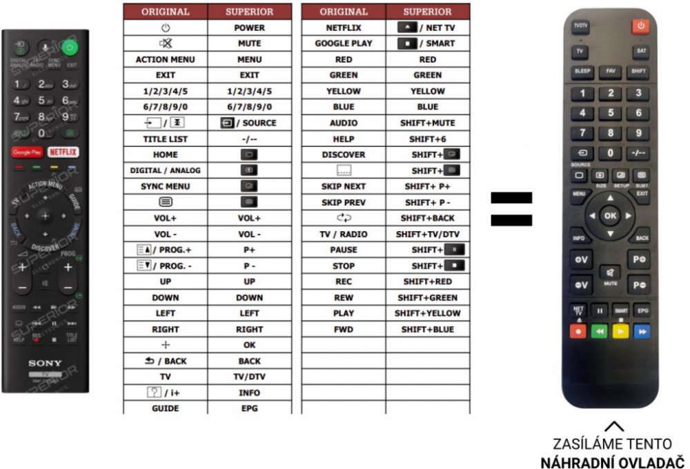Sony náhradní dálkový ovladač . NEPOTŘEBUJE KÓDY
