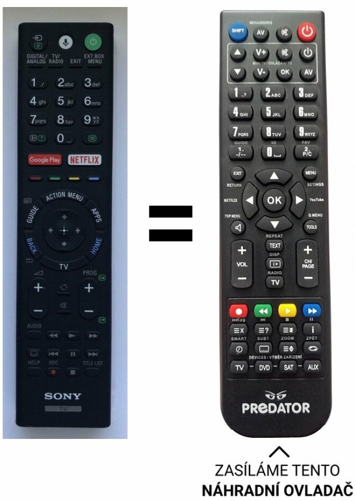 SONY náhradní dálkový ovladač BEZ ZADÁVÁNÍ KÓDŮ.