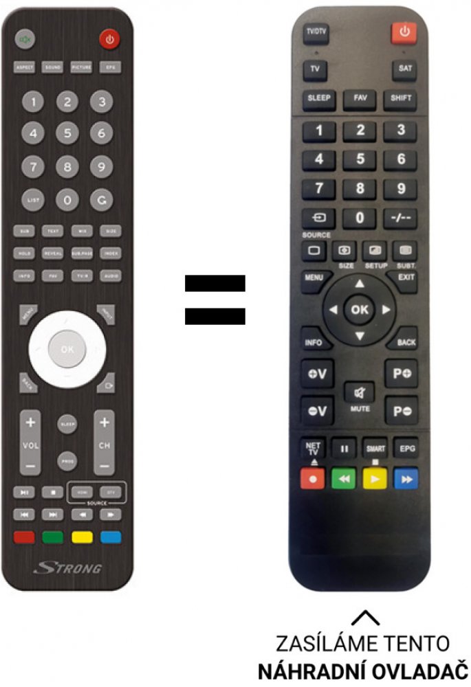 STRONG SRT 40FZ4003N náhradní dálkový ovladač BEZ NUTNOSTI NASTAVOVÁNÍ. Má všechny funkce jako původní dálkový ovladač.