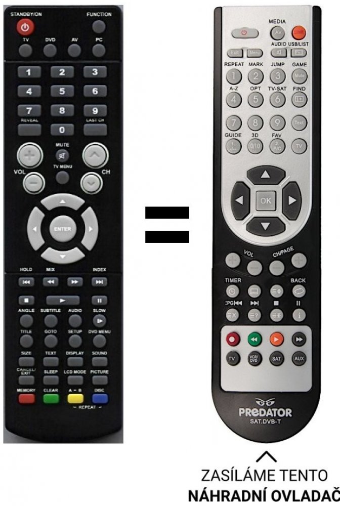 Náhradní dálkový ovladač jiného vzhledu ale stejných funkcí, bez nutnosti nastavování kodů. Například LCD22-541, RCU147