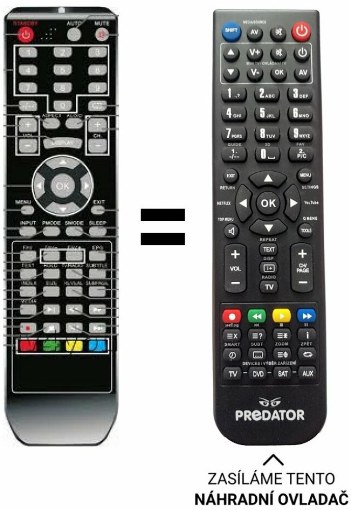 Technika LCD 24-644 Náhradní dálkový ovladač pouze za vyobrazený model na horním obrázku. Tento televizor Technika měl více typů ovladačů.